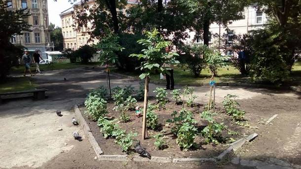 В центре Львова на клумбе бездомные выращивали картофель. Фото