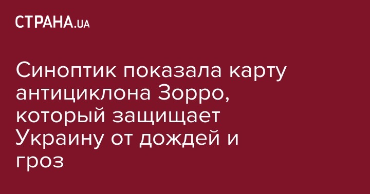 Антициклон Зорро - главный защитник Украины от дождей, гроз и всевозможных шквалов с градом, считает синоптик Наталка Диденко.