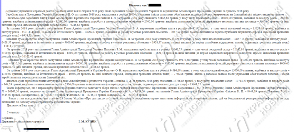 "Заработная плата Президента Украины Порошенко П.А. за май 2018 года начислена в размере 28 000 гривен и после выплаты обязательных налогов и сборов перечислена на благотворительные цели в соответствии с поданным заявлением", - сказано в нем.