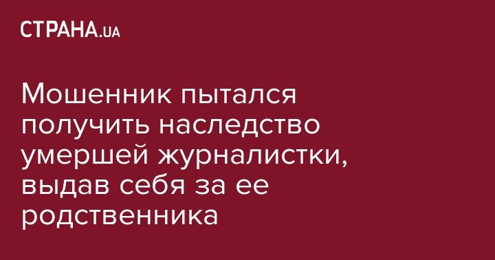 Мошенник пытался получить наследство умершей журналистки, выдав себя за ее родственника
