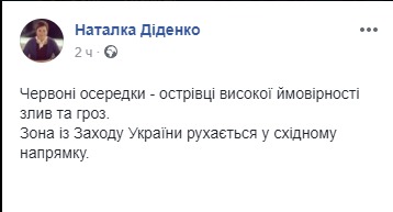 Грозовые тучи поступают к Киеву. Об этом написала в своем Facebook синоптик Наталья Диденко.