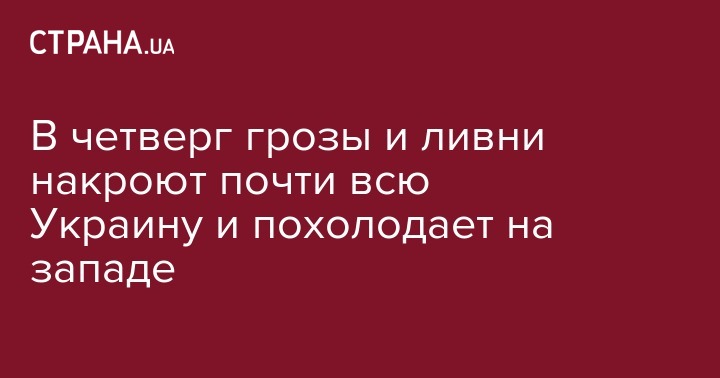 В четверг грозы и ливни накроют почти всю Украину и похолодает на западе