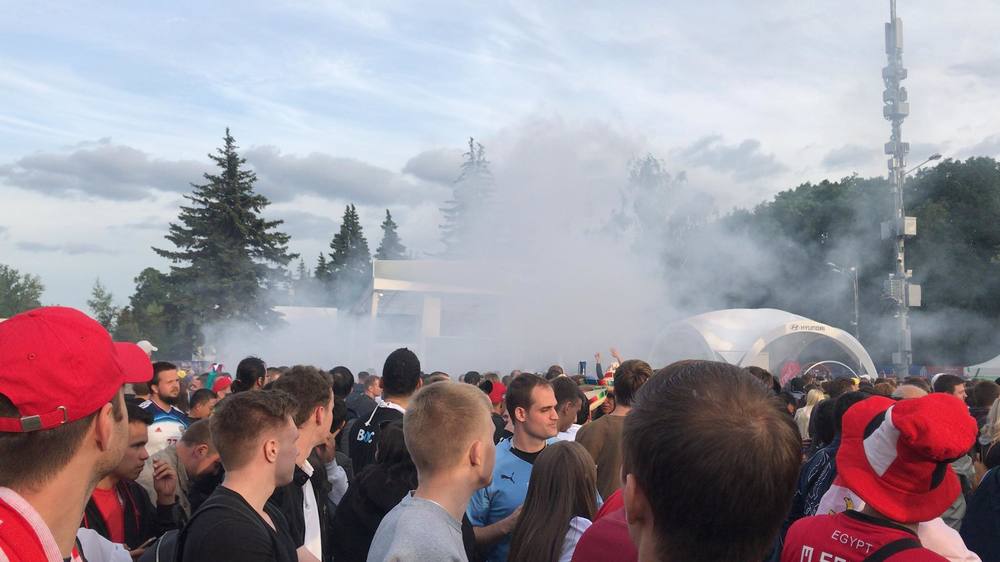 18:50  Фан-зона возле Лужников переполнена. Полиция не пускает прибывающих фанатов, отправляю их на другие входы, но там также не пускают. Группа из 50 болельщиков прорвала кордон и помчалась навстречу футболу.