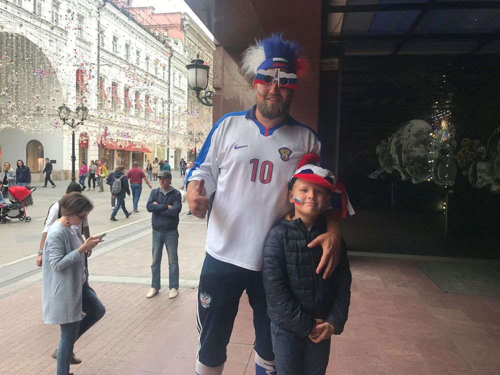 22:13  Поговорили с жителем Донецка, который приехал на Мундиаль. У него на щеках по флагу: украинский и российский, как и у его девушки.