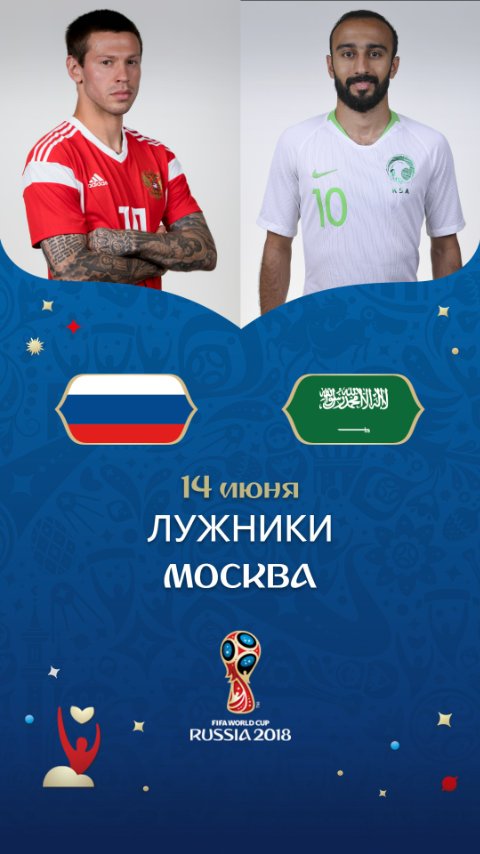 18:00  Начался матч между РФ и саудитами. Перед ним приветственную речь сказал Владимир Путин.