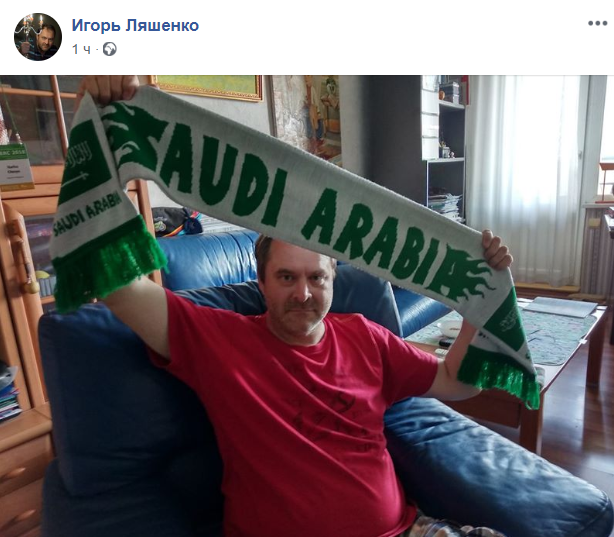 19:04  Киевский журналист Игорь Ляшенко тоже болеет за саудитов, которые проигрывают пока что всухую.