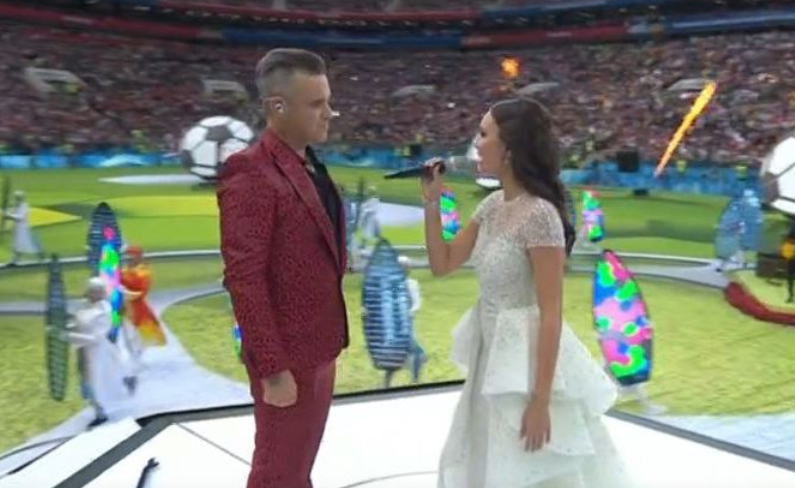 17:30  Открытие началось! Робби Уильямс поет свой суперхит Feel. Потом - Let Me Entertain You.
