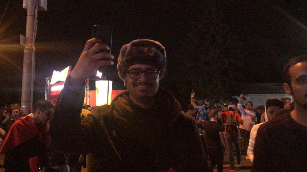 12:28 Чемпионат мира по футболу 2018 года стремительно набирает обороты. Фаны, приехавшие в Россию, не перестают удивлять оригинальными образами и фото. Корреспонденту "Страны" удалось снять индуса в Москве в пальто и шапке.