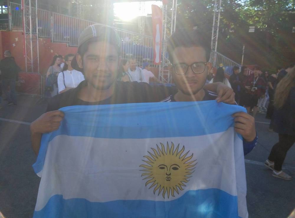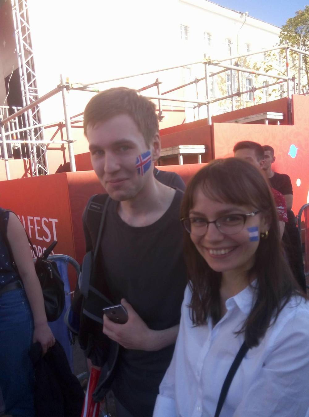 17:10 В фан-зоне в Нижнем Новгороде болельщики наблюдают за поединком Аргентины и Исландии.
