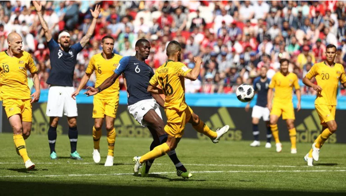 Австралийцы неожиданно быстро ответили своим голом. Но французы смогли добиться своего. Ближе к концу матча мяч после удара Погба от перекладины стукнулся за линией и вылетел в поле.