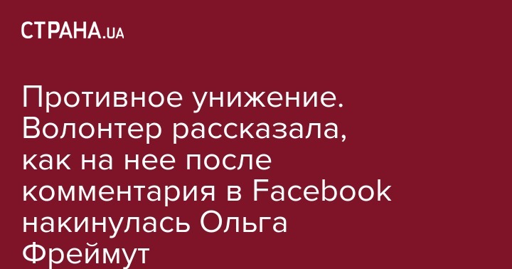 Противное унижение. Волонтер рассказала, как на нее после комментария в Facebook накинулась Ольга Фреймут