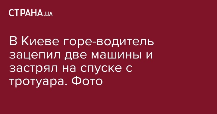 В Киеве горе-водитель зацепил две машины и застрял на спуске с тротуара. Фото