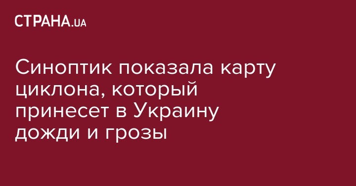 Синоптик показала карту циклона, который принесет в Украину дожди и грозы