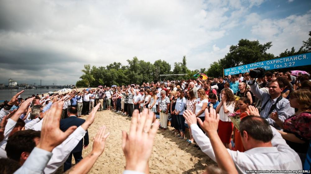 Крещение принимали 150 человек из Киева и области. Обряд совершали 24 пастора. Об этом сообщает Радио Свобода.
