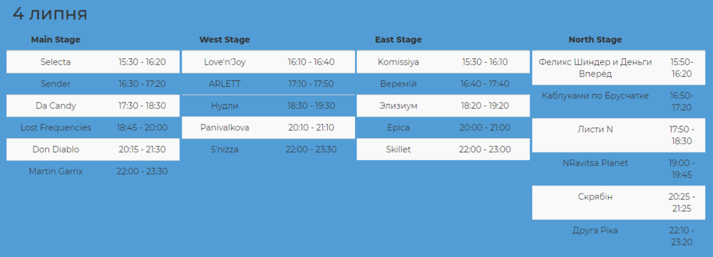 Расписание Atlas Weekend 4 июля
