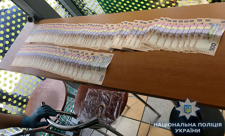 Полиция квалифицировала действия задержанного по ч. 3 ст. 368 УК Украины (принятие предложения, обещания или получения неправомерной выгоды должностным лицом).