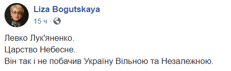 "Умер Лев Григорьевич Лукьяненко. Гигант национального движения ... Мудрый и сильный политик. Таких уже не делают, говорят, в подобных печальных случаях ...