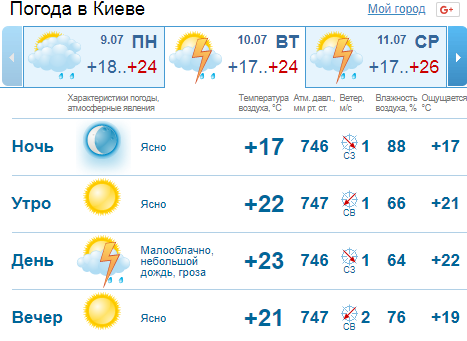 Ресурс Gismeteo также сообщает, что сегодня в Киеве днем возможен дождь.