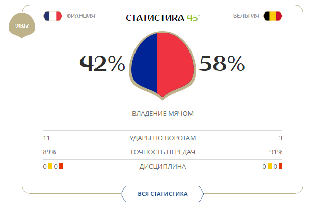 20.34 Судя по пройденному сопернику в 1/4, бельгийцы должны быть более уверены в своих силах. Они прошли Бразилию, а французы обыграли Уругвай.