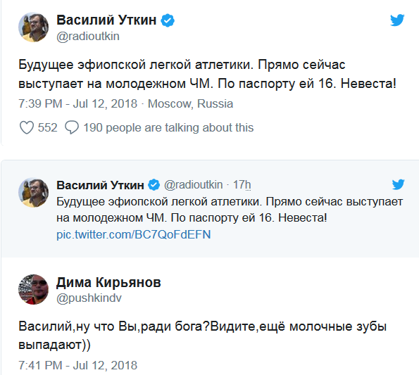 В соцсетях возмущаются таким очевидным несоответствием. Так, известный российский комментатор Василий Уткин иронично прокомментировал фото спортсменки.