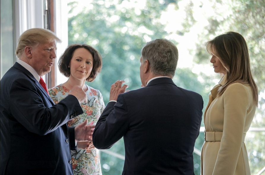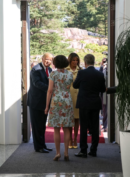 В столице Финляндии держится жара +27 градусов, это на 1-2 градуса жарче, чем сегодня в Киеве. Однако Мелания Трамп вышла на встречу с президентом Финляндии и его супругой в платье-пальто от Gucci лимонного цвета из довольно плотного материала. Фото со встречи обнародовали журналисты.