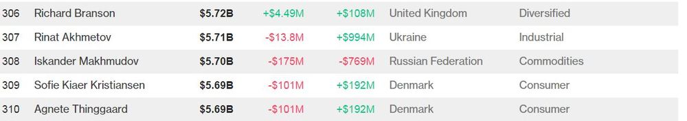 Ахметов занимает 307 позицию в рейтинге. По данным агенства, в последнее время Ахметов потерял 13,8 млн долларов, при этом за последний год его состояние увеличилось на 994 млн долларов.