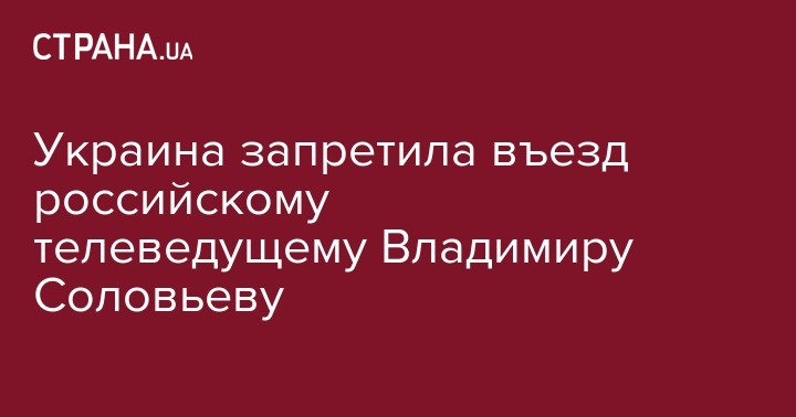 "В интересах обеспечения национальной безопасности Украины 22 февраля 2018 года гражданину Российской Федерации Соловьеву Владимиру Геннадиевичу вынесено постановление о запрете въезда на Украину сроком на три года", - говорится в заявлении СБУ, копией которого располагает организация.