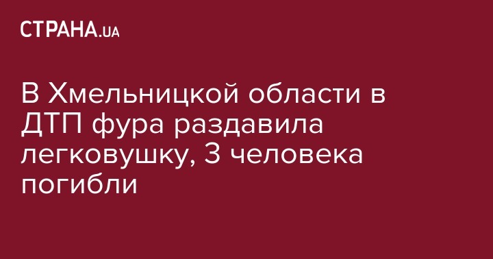 В Хмельницком районе на въезде в село Прибужское произошло дорожно-транспортное происшествие с участием грузового автомобиля IVECO и легкового автомобиля Volkswagen Golf, в результате которой погибла семья из трех человек и еще один ребенок травмирован.