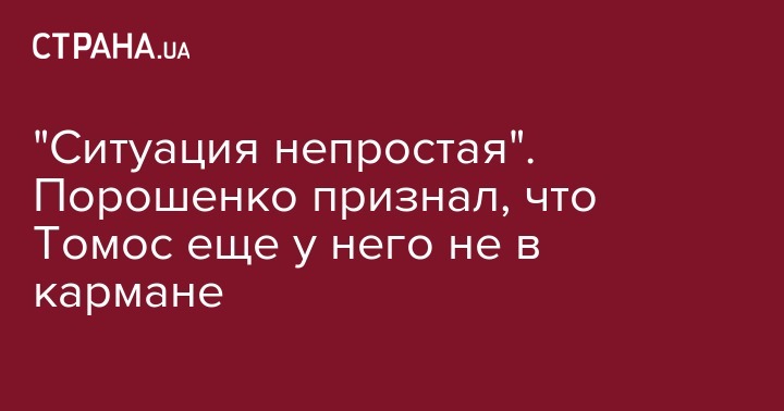 "Ситуация непростая. Противодействие масштабное и системное. Нет никаких оснований считать, будто Томос уже у нас в кармане. А нам с вами остается две вещи, для того, чтобы его получить: молиться, верить и бороться", - сказал Порошенко на встрече с греко-католиками, которая прошла в середине июля в Зарванице на Тернопольщине.
