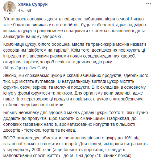 Об этом Супрун написала на своей странице в Facebook.