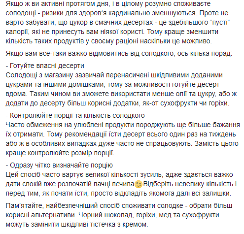 Исполняющая обязанности министра здравоохранения Ульяна Супрун рассказала, как снизить риск развития диабета, но при этом не отказываться от сладкого.