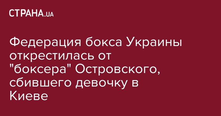 Федерация бокса Украины официально опровергла информацию о том, что Кирилл Островский, который сбил насмерть 10-летнюю девочку в Киеве, не имеет отношения к этой спортивной организации.