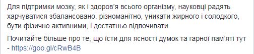 "Для поддержки мозга, как и здоровье всего организма, ученые советуют питаться сбалансировано, разнообразно, избегать жирного и сладкого, быть физически активными, и достаточно отдыхать", - резюмирует чиновница.