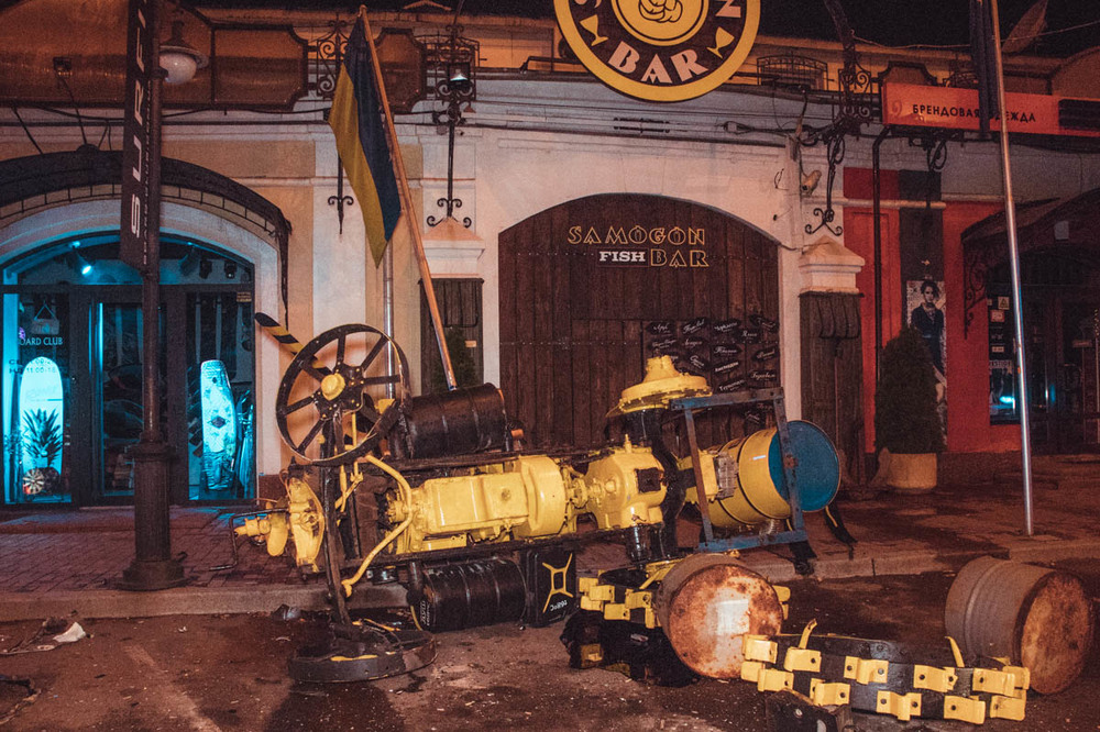 Авария случилась в 02:48. По предварительной информации, BMW на грузинских номерах двигался на высокой скорости по Гаванскому мосту в сторону правого берега. Водитель не справился с управлением и на съезде с моста вылетел с проезжей части. В результате происшествия машина получила серьезные повреждения, а раритетный трактор, который стоял в качестве рекламы Samogon Bar, оказался перевернутым на бок.