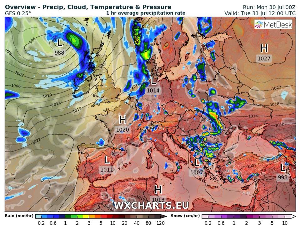 Она сообщает, что жара удержится на Юге и Востоке, +28+33 градуса. В целом по стране ожидается +25+30 градусов: "Киевляне! Если вы соскучились по дождю, то 31 июля в столице как раз снова подождит и погремит. Днем предполагается около +28+30 градусов. Дышать будет тяжеловато", - прогнозирует Диденко. Но во второй половине недели температура несколько спадет.