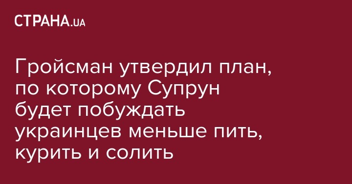 Гройсман утвердил план, по которому Супрун будет побуждать украинцев меньше пить, курить и солить