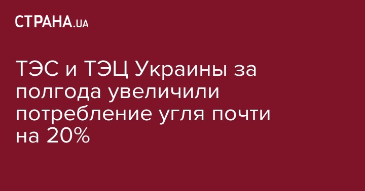 ТЭС и ТЭЦ Украины за полгода увеличили потребление угля почти на 20%