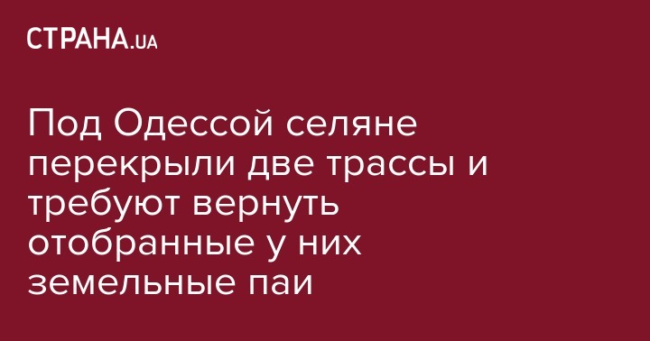 Возмущенные люди перекрыли две трассы в направлении Одессы из-за того, что местная власть передала в аренду их землю. На место происшествия прибыла полиция. На трассе образовалась пробка как в сторону Одессы так и в направлении Измаила. Об этом сообщает 112 Украина.