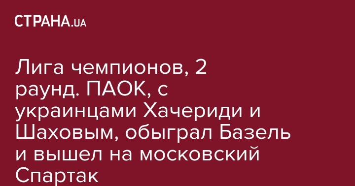 Лига чемпионов, 2 раунд. ПАОК, с украинцами Хачериди и Шаховым, обыграл Базель и вышел на московский Спартак