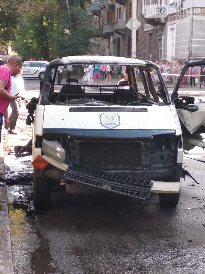 Как пишет сайт "Наш репортер", микроавтобус Volkswagen Transporter с надписью "Дніпро" загорелся, водителю удалось выскочить из машины. Ему оказали необходимую медицинскую помощь. По предварительной информации, никто из прохожих не пострадал.