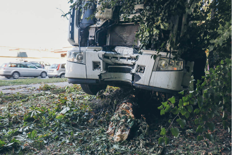 Во вторник, 7 августа, в Киеве грузовик слетел с дороги и едва не протаранил жилую пятиэтажку.