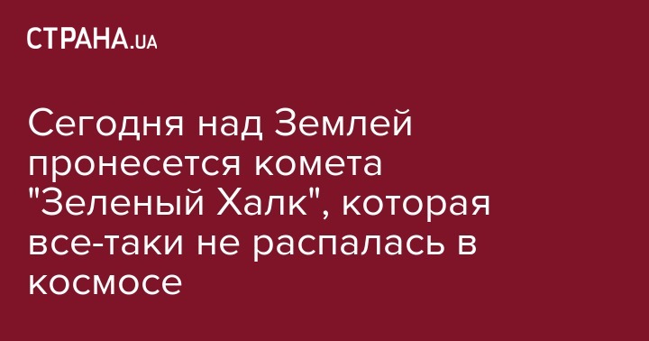 Сегодня над Землей пронесется комета "Зеленый Халк", которая все-таки не распалась в космосе