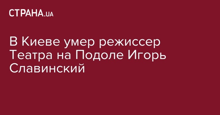 В Киеве скончался режиссер-постановщик Театра на Подоле Игорь Славинский. Об этом на своей странице в Facebook сообщил театральный критик Олег Вергелис.