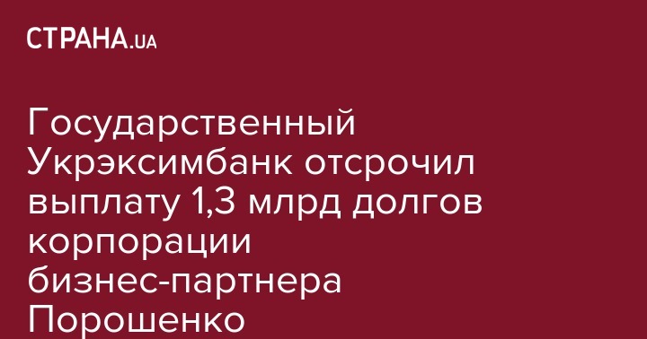 Государственный Укрэксимбанк отсрочил выплату 1,3 млрд долгов корпорации бизнес-партнера Порошенко