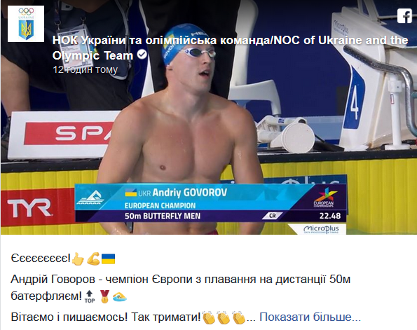 "Андрей Говоров - чемпион Европы по плаванию на дистанции 50 метров баттерфляем. Поздравляем и гордимся. Так держать", - заявили в пресс-службе НОК.