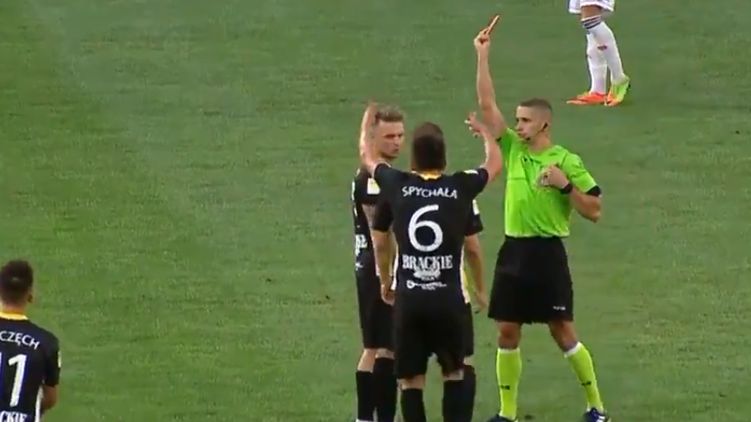 Необычное удаление произошло на 81-й минуте матча. Полузащитник "Ястшембе" Патрик Скоречки оттолкнул одного из игроков собственной команды, за что был удален с поля.