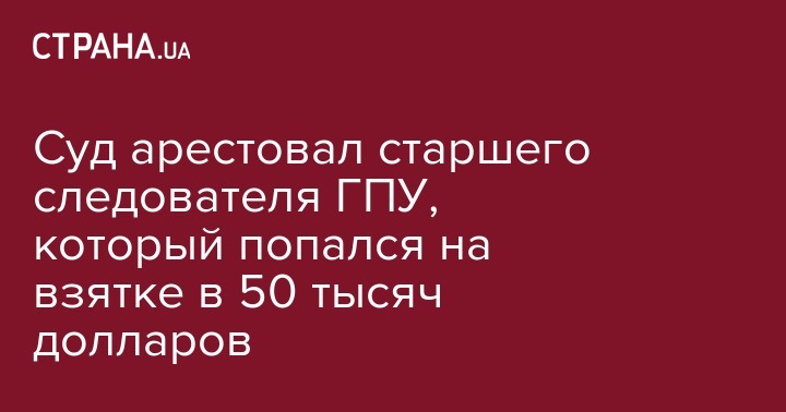 Суд арестовал старшего следователя Генпрокуратуры, задержанного за взятку в 50 тысяч долларов. Об этом сообщает пресс-служба СБУ.