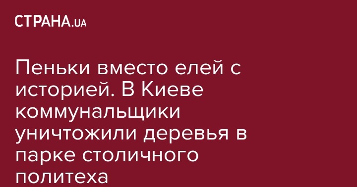 Пеньки вместо елей с историей. В Киеве коммунальщики уничтожили деревья в парке столичного политеха