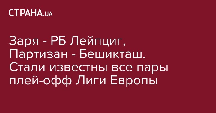 Заря - РБ Лейпциг, Партизан - Бешикташ. Стали известны все пары плей-офф Лиги Европы