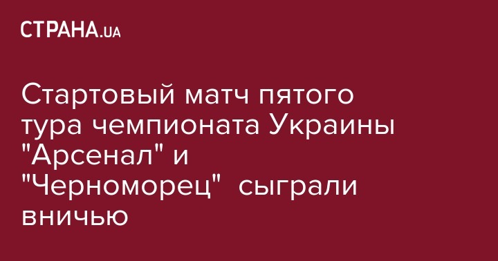 Очередной, пятый тур чемпионата Украины по футболу среди команд Премьер-лиги начался поединком между ФК "Арсенал-Киев" и одесским "Черноморцем". В пятницу, 17 августа, "Арсенал-Киев" и "Черноморец" разошлись миром 1:1 на столичном стадионе "Динамо" имени Валерия Лобановского, сообщает Укринформ.